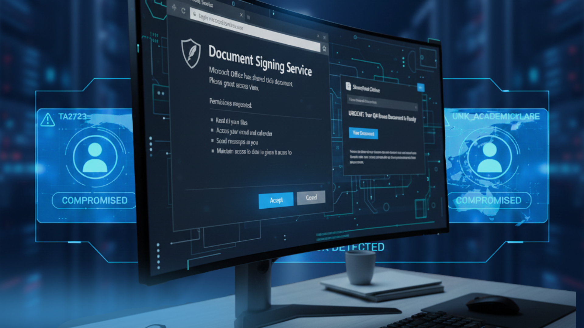 Hackers are creating malicious applications that mimic official portals and login pages. The pages look like exact replicas of OneDrive, LinkedIn, Docusign, and more. One key difference is these fake applications ask for an OAuth code. This code grants hackers permission to access emails, files, and other data.