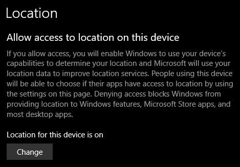 Under “Allow access to location on this device”, turn it OFF if you want to block Windows and all Apps from accessing your device’s location as shown below.